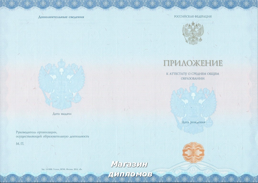 Аттестат Российской Федерации за 11 классов, выдавался с 2014 года
